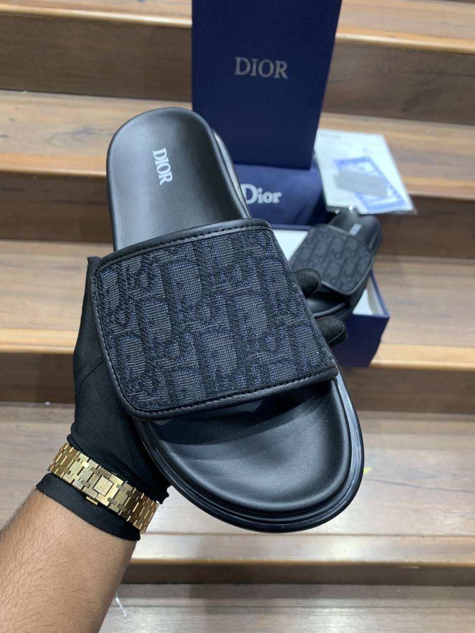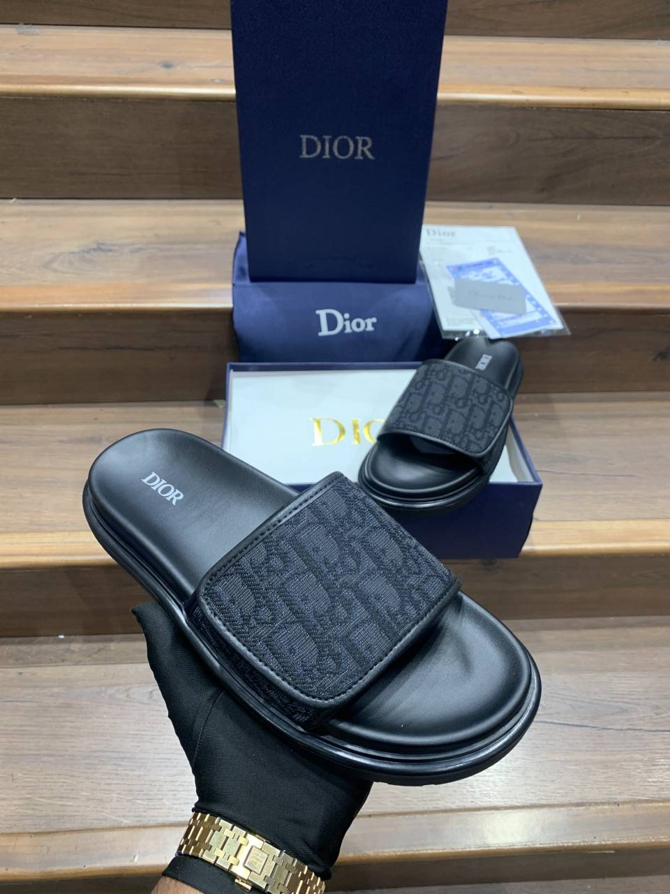 Christian DIO_R LOGO PREMIUM LEATHER SLIDE