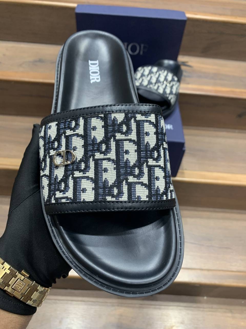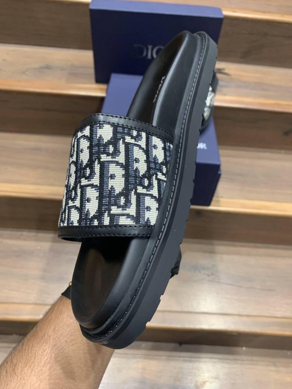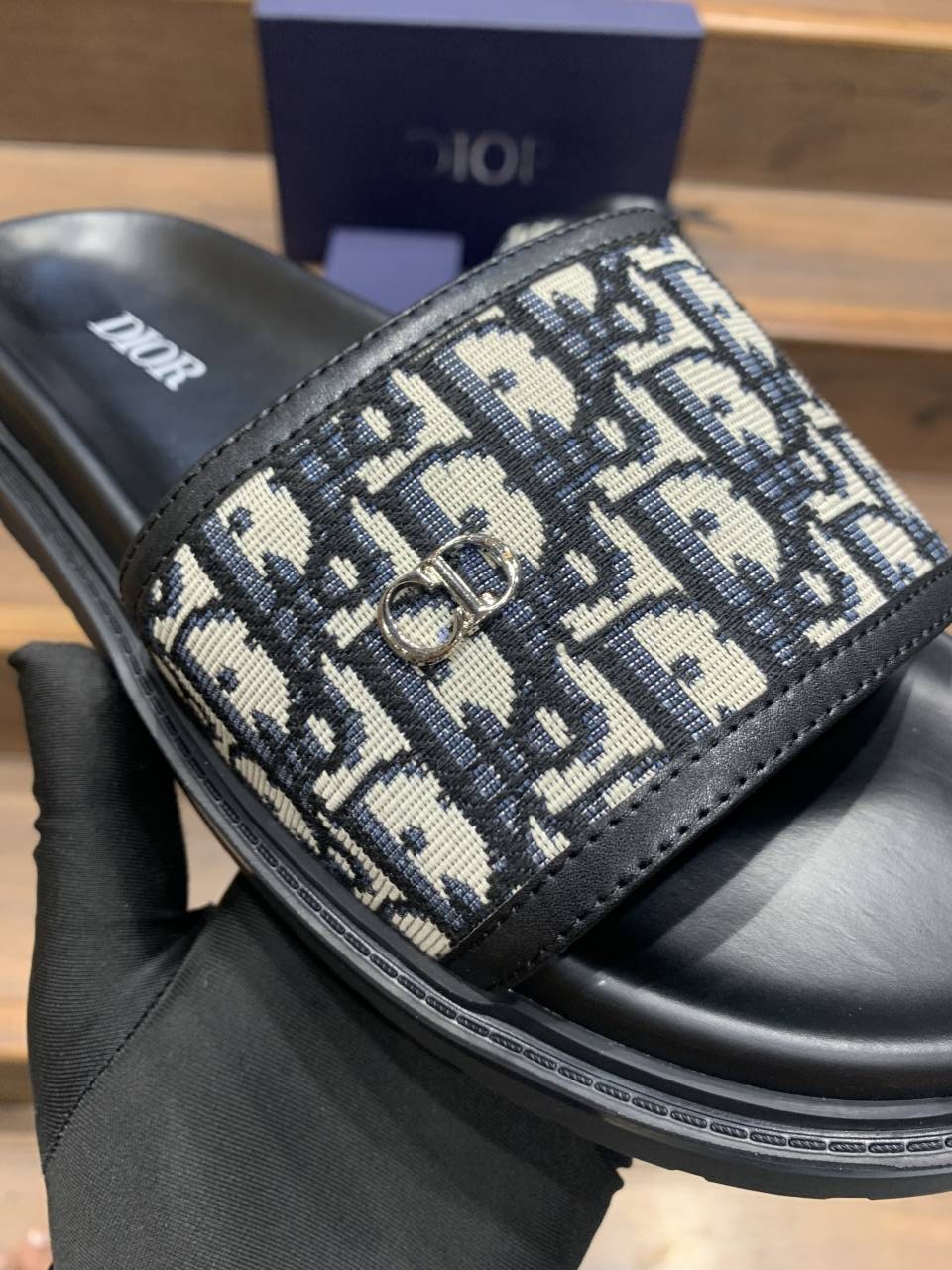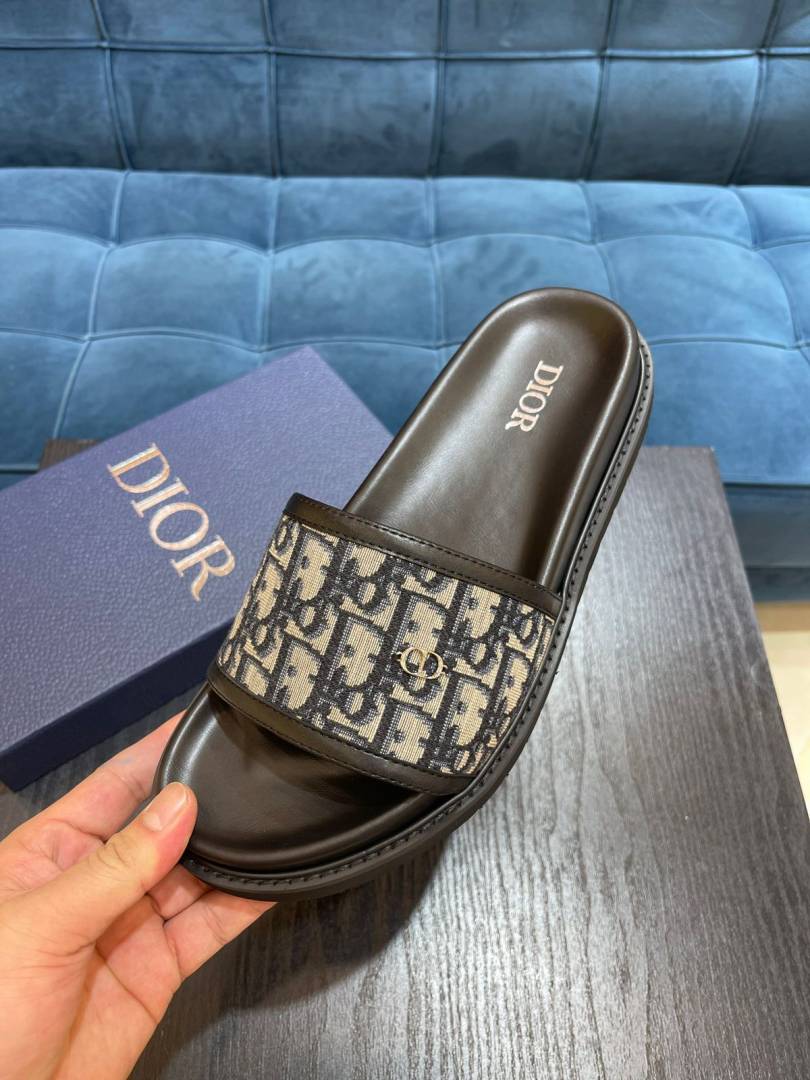 Christian DIO_R LOGO PREMIUM LEATHER SLIDE