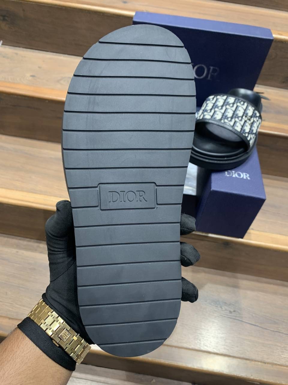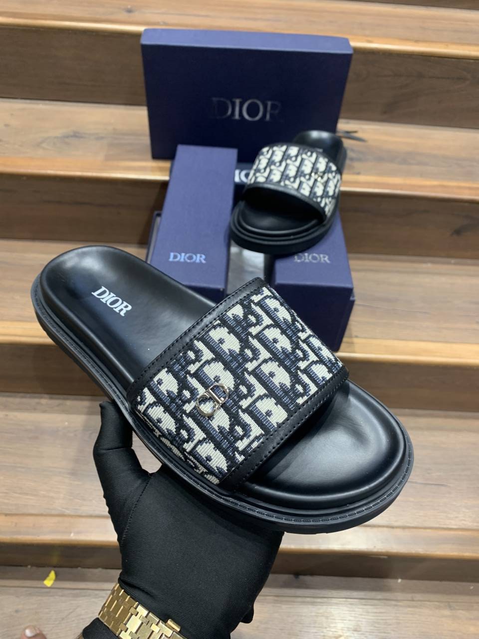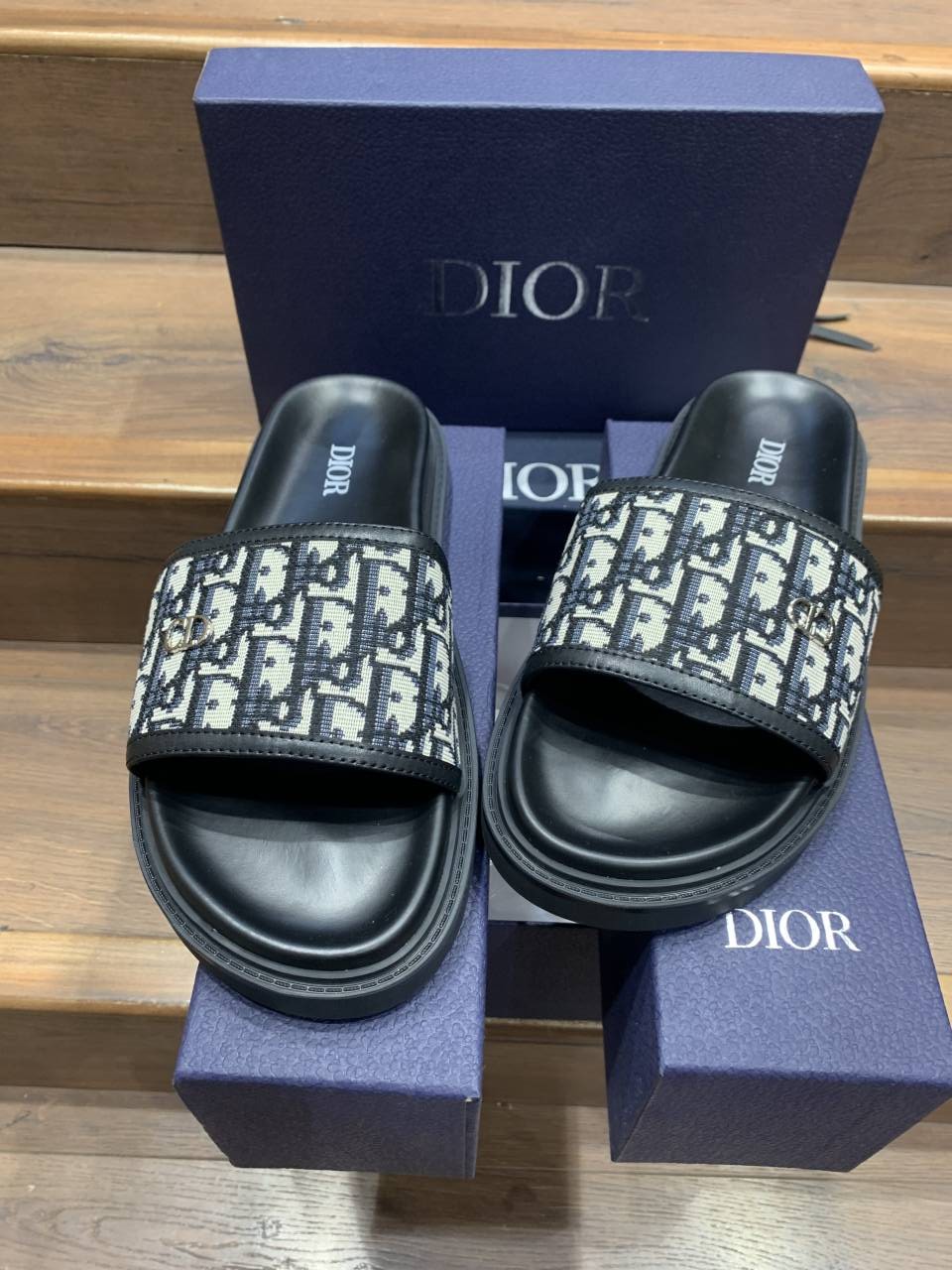 Christian DIO_R LOGO PREMIUM LEATHER SLIDE
