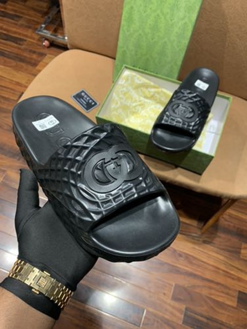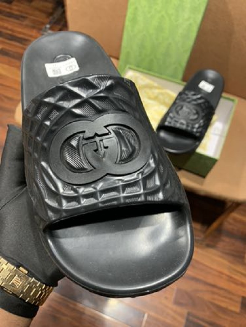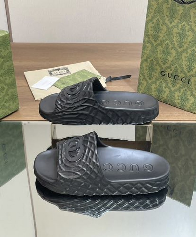GUCC_I INTERLOCKING G BLACK PREMIUM SLIDE