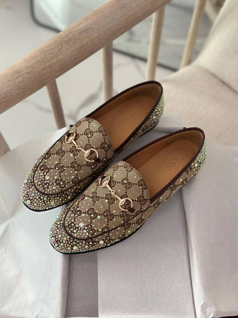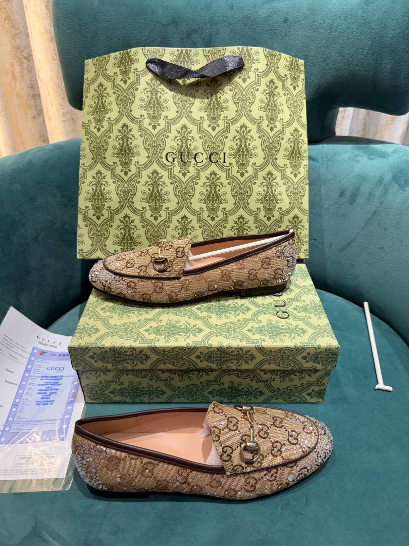 Gucci_Womens_Jordaan_Loafers_Wid_OG_Box_&_Carry_Bag_Khakhi_Crystal