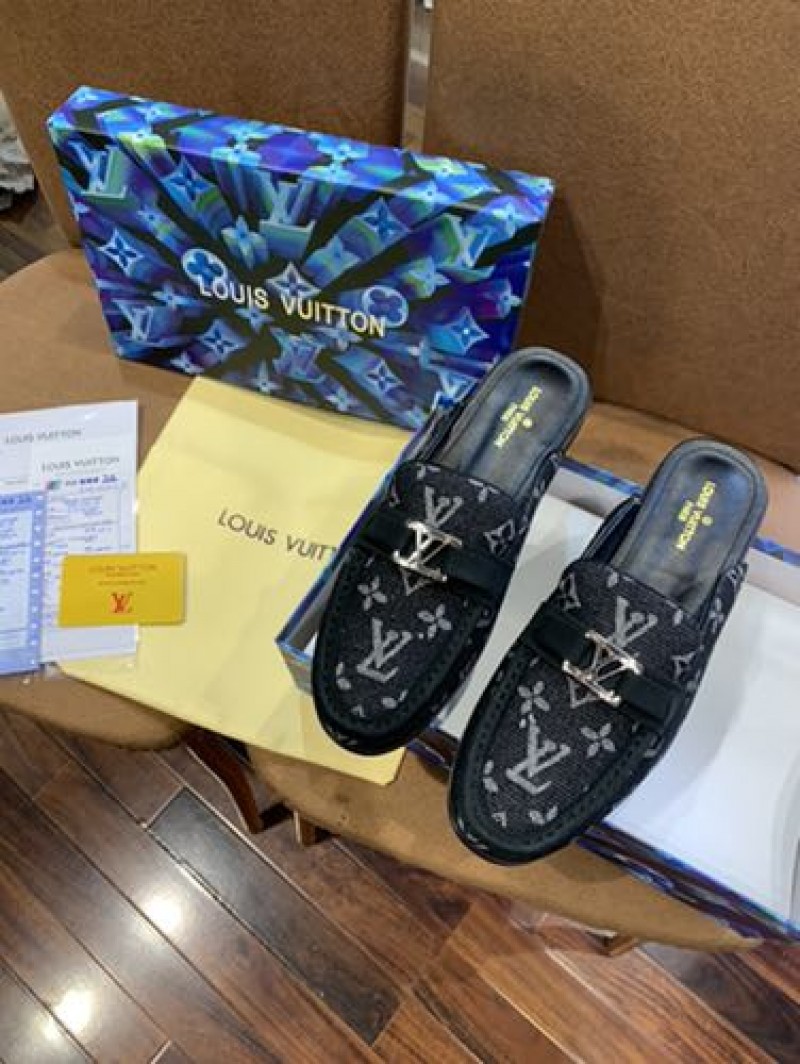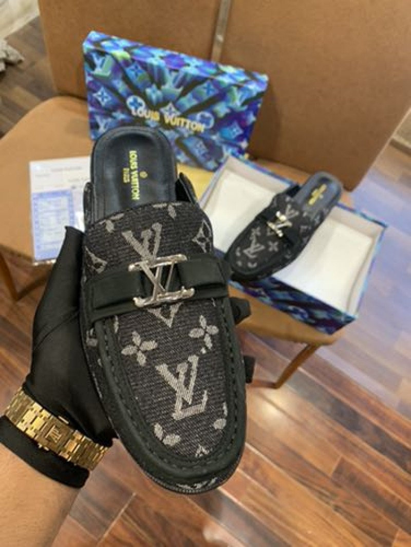LOUIS VUITTON MAJOR BLACK DENIM PREMIUM MULE