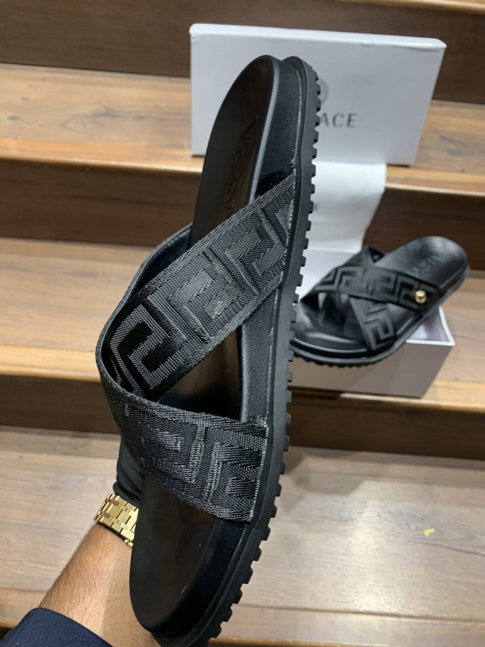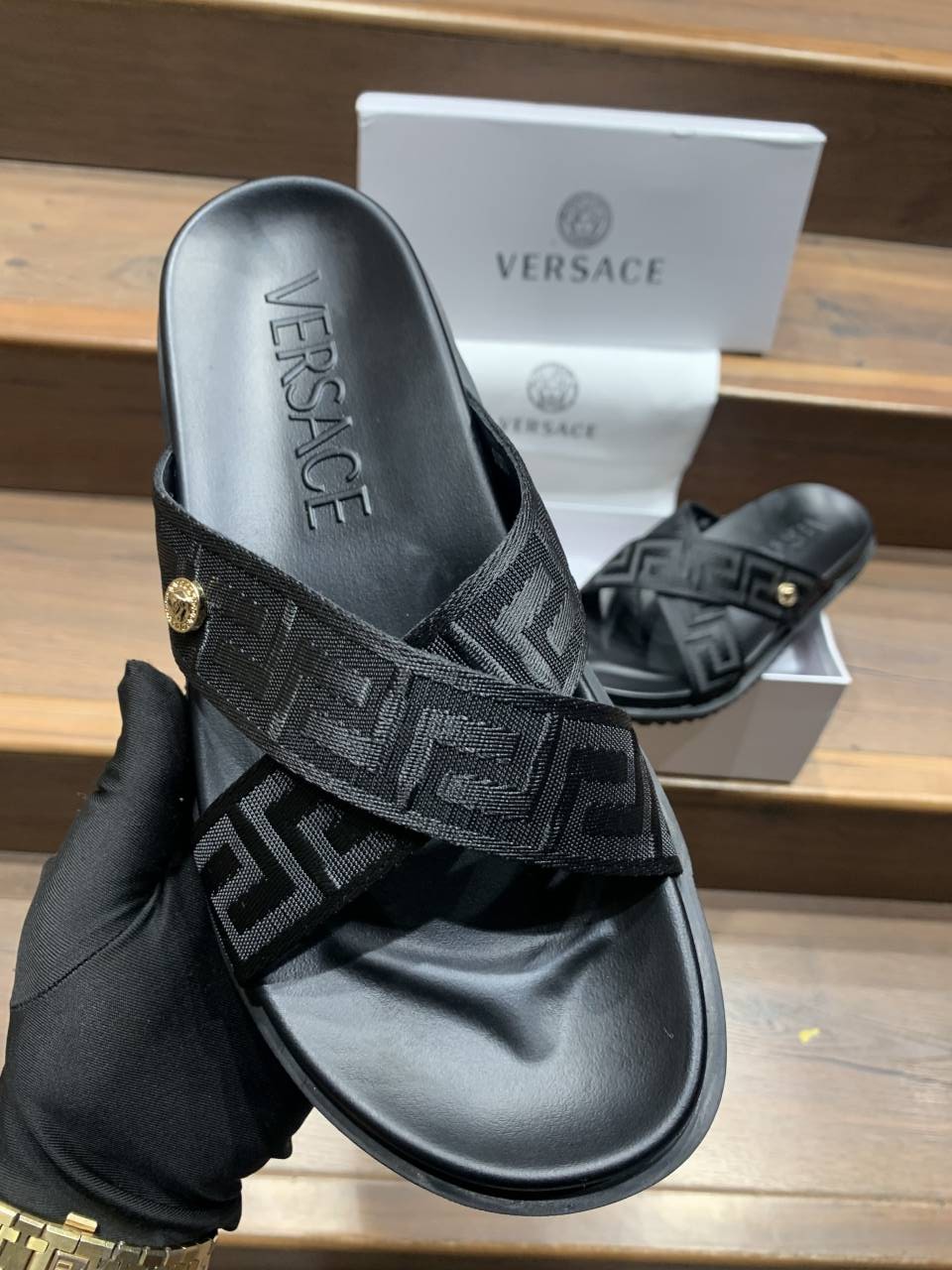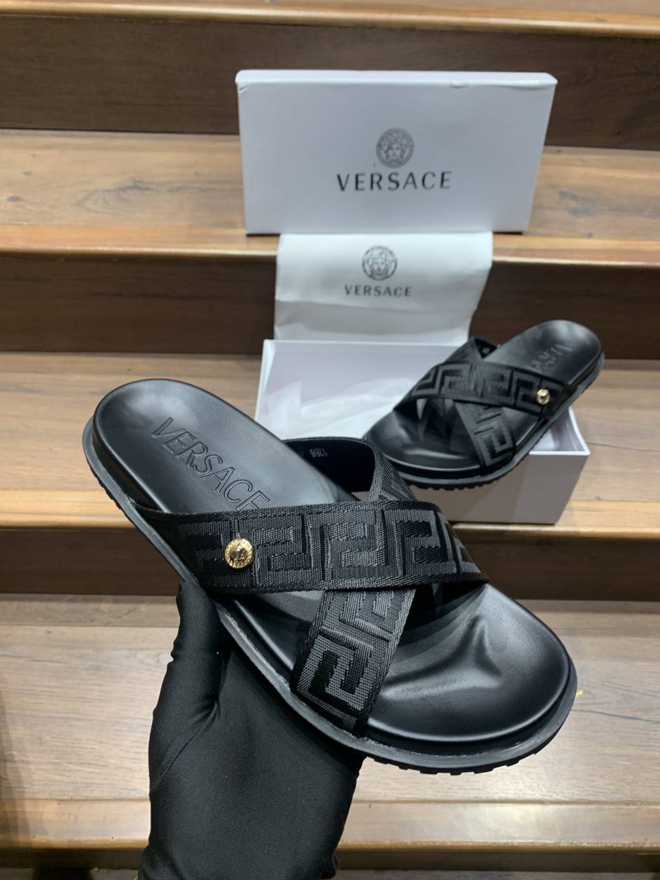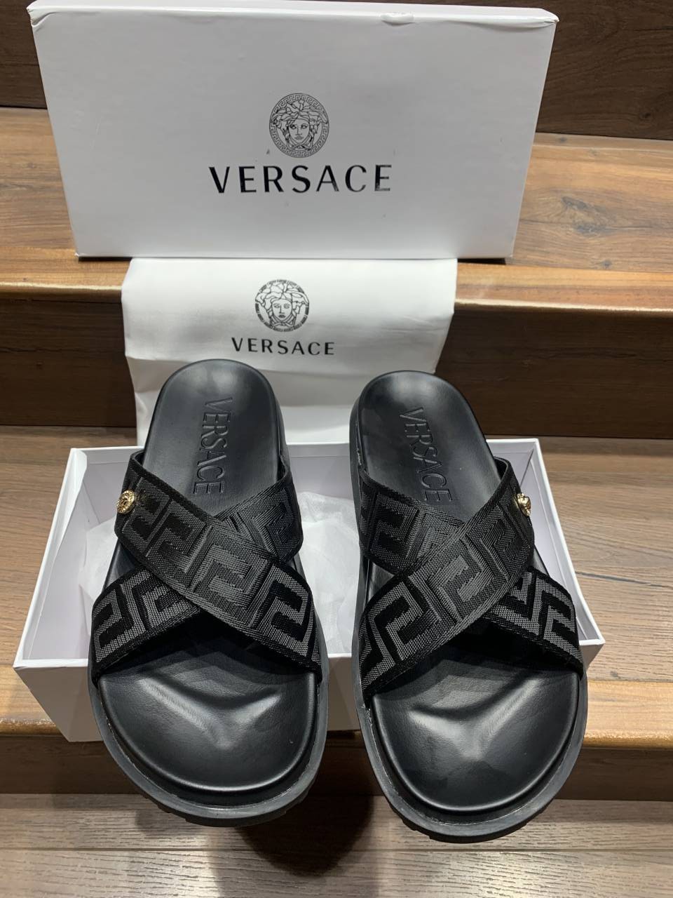 VERSACE BLACK LOGO PREMIUM SLIDE