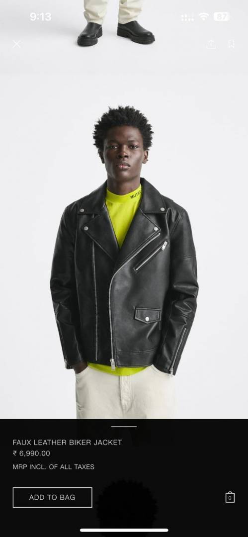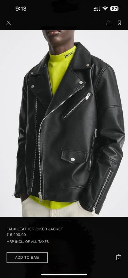 Zar a Imported Super Premium Black Leather Zipper Jacket F1915